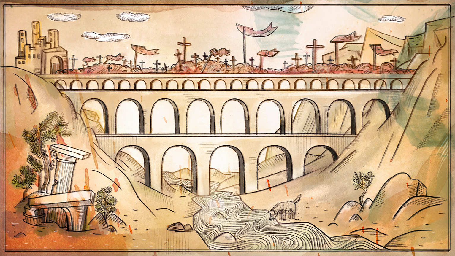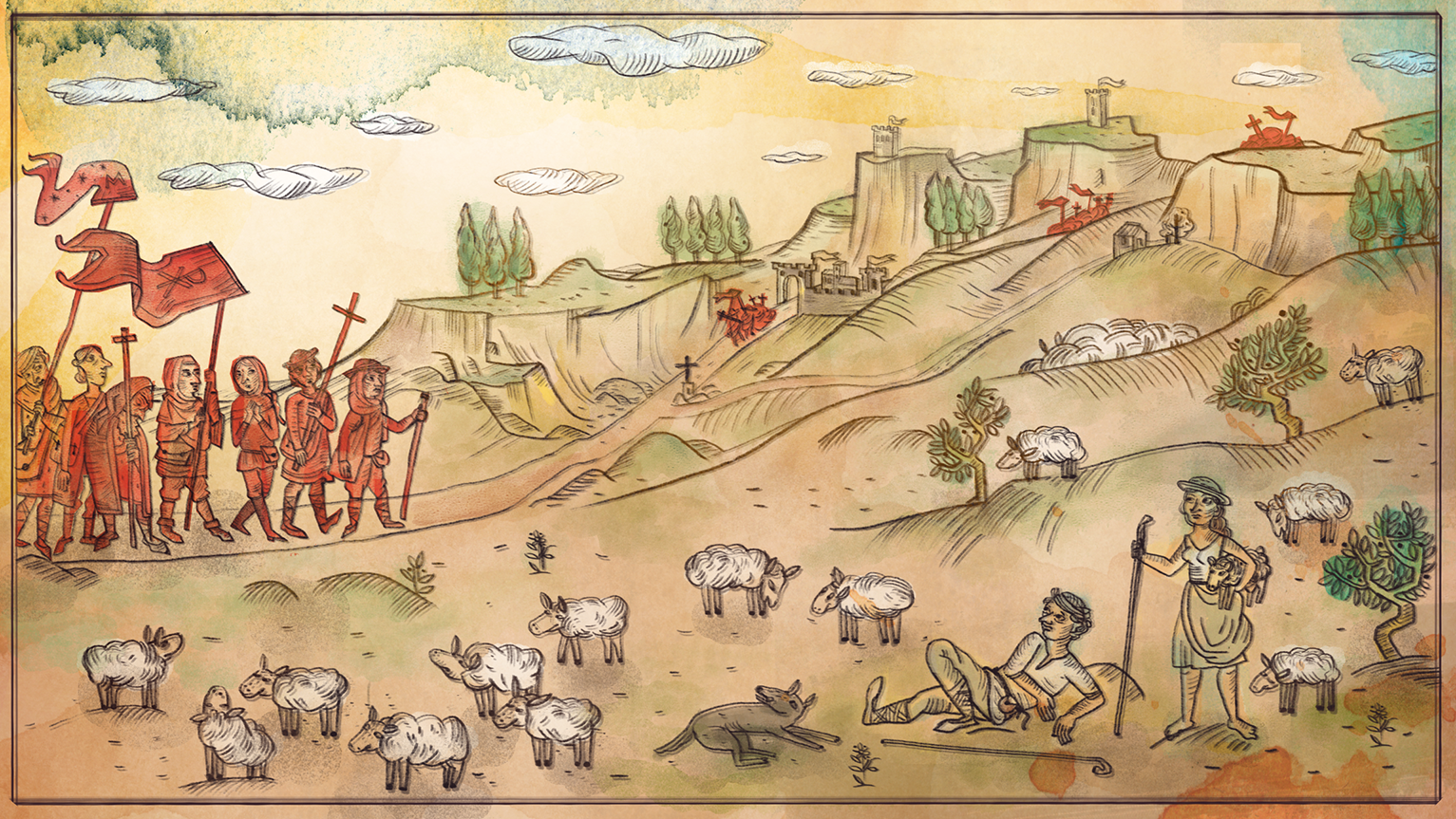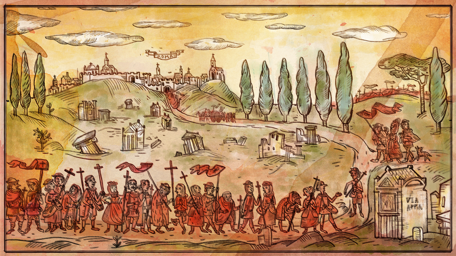 Woodcut-style illustrations for Zsolt Richly's historical animation series, for the episode depicting Martin Luther's pilgrimage to Rome